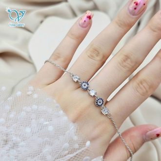 دسنبند نقره دخترانه طرح چشم و نظر و گل بابونه