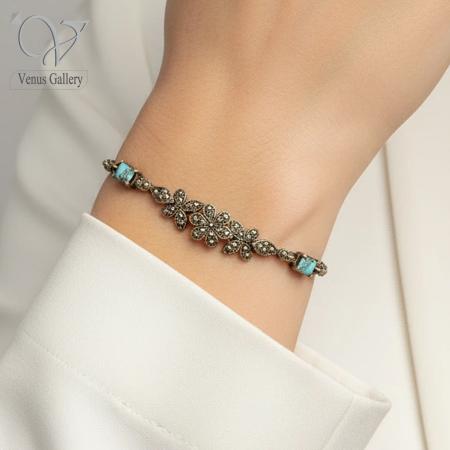 دستبند نقره نگین مارکازیت طرح گل انتخابی ایدهآل برای بانوانی است که: