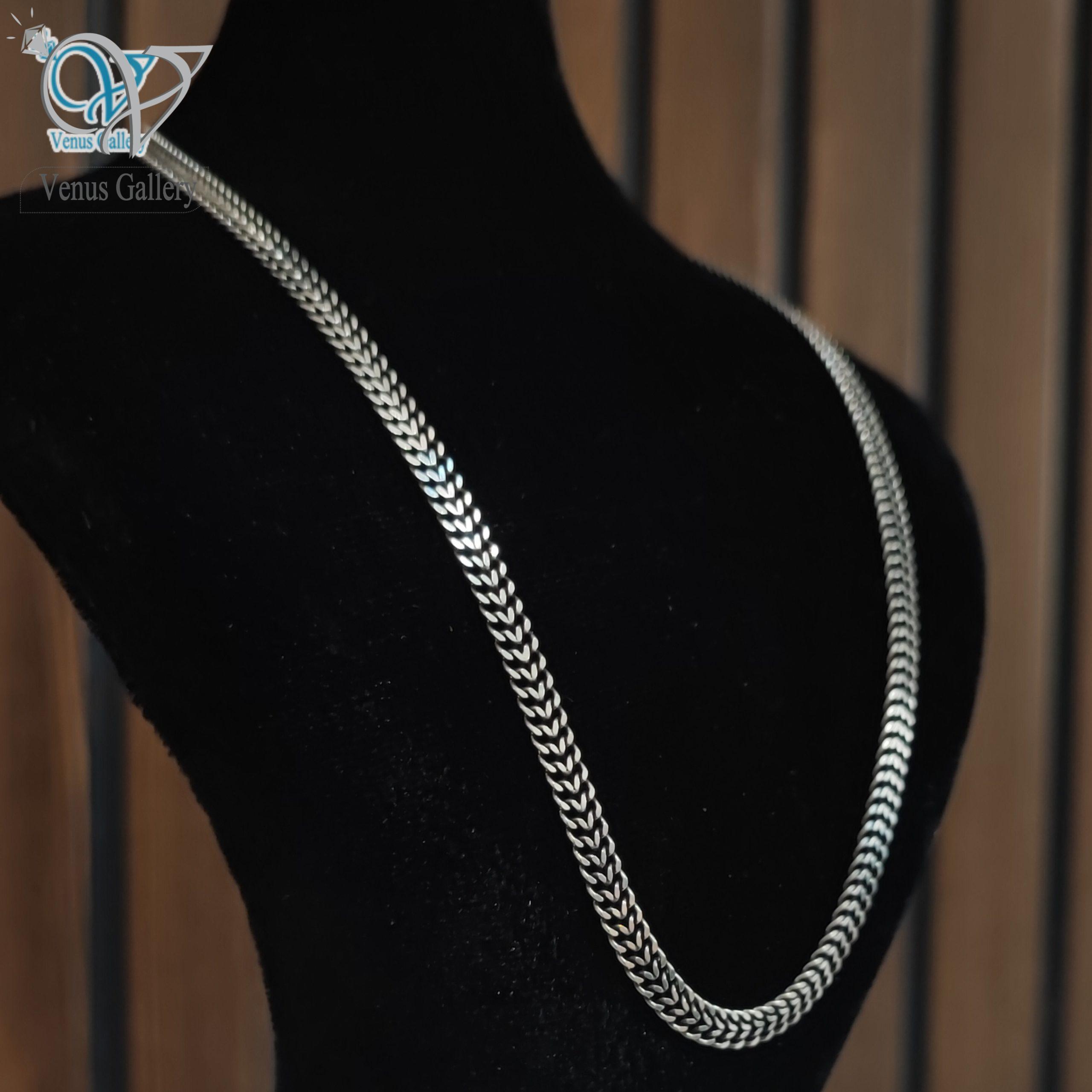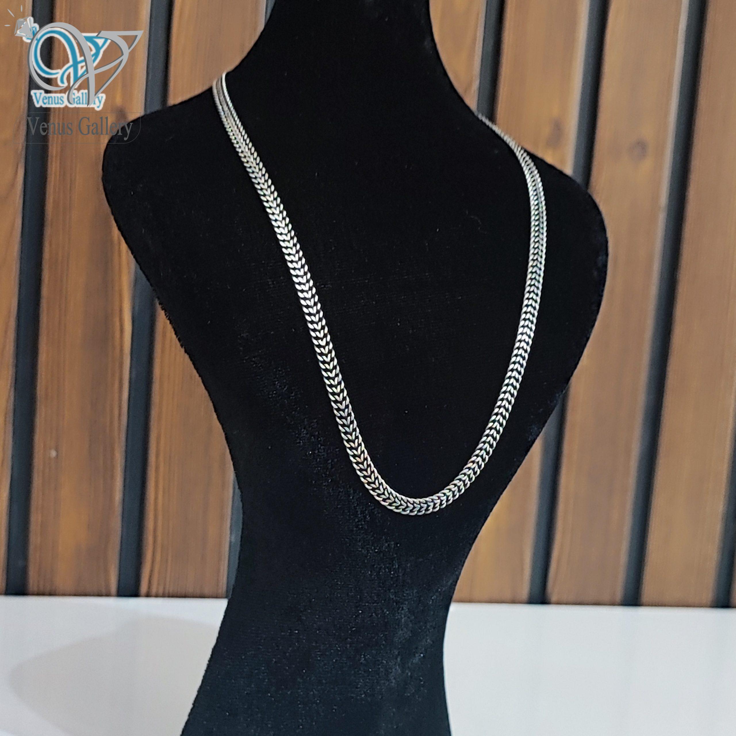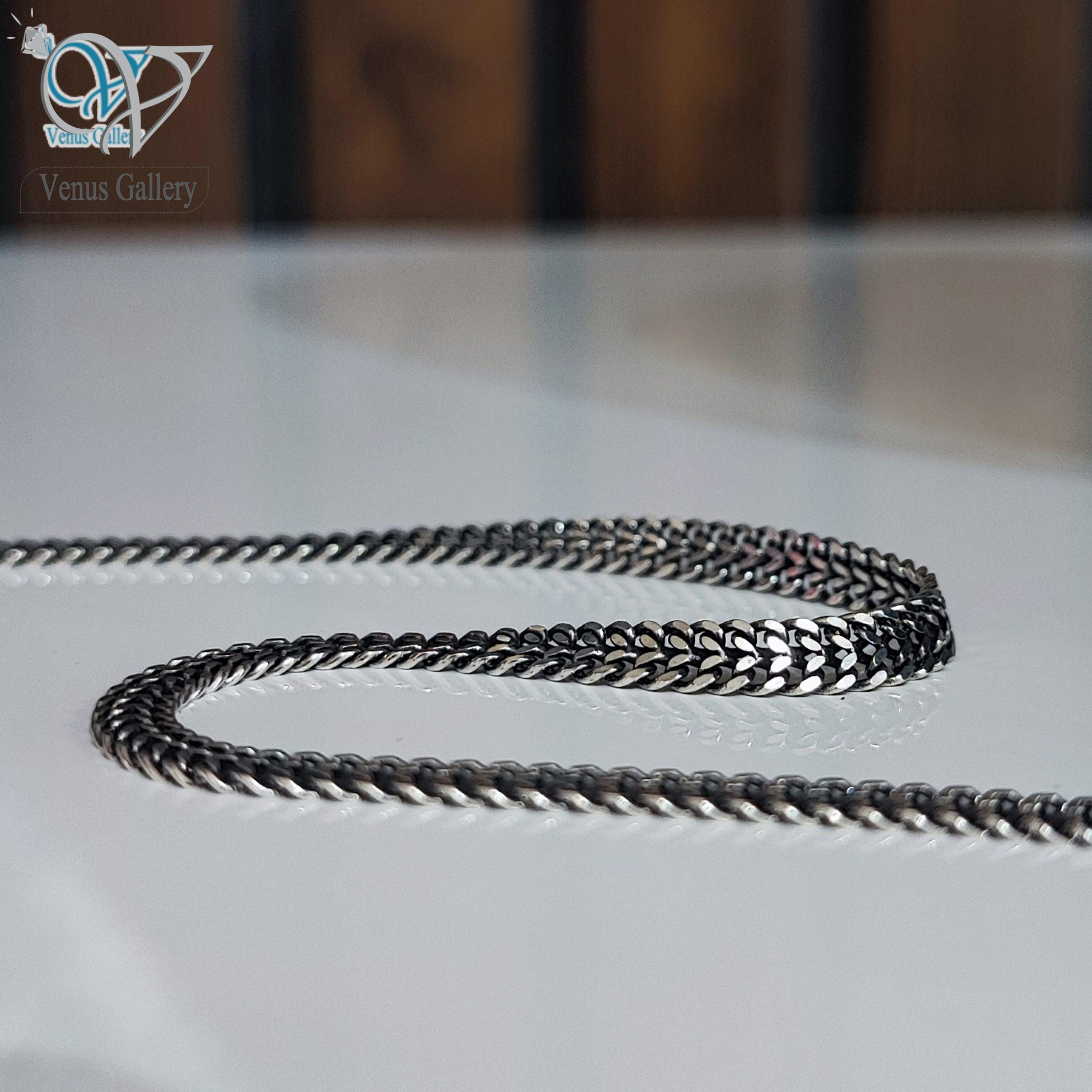 زنجیر نقره مردانه ایتالیایی سیاه قلم بافت کد 2683