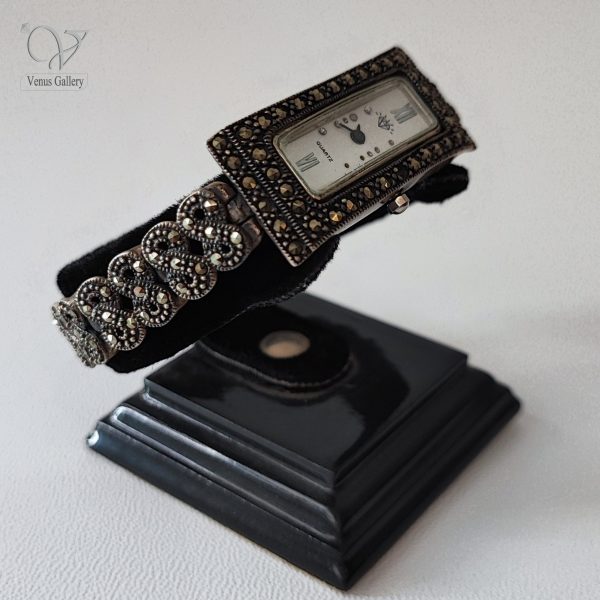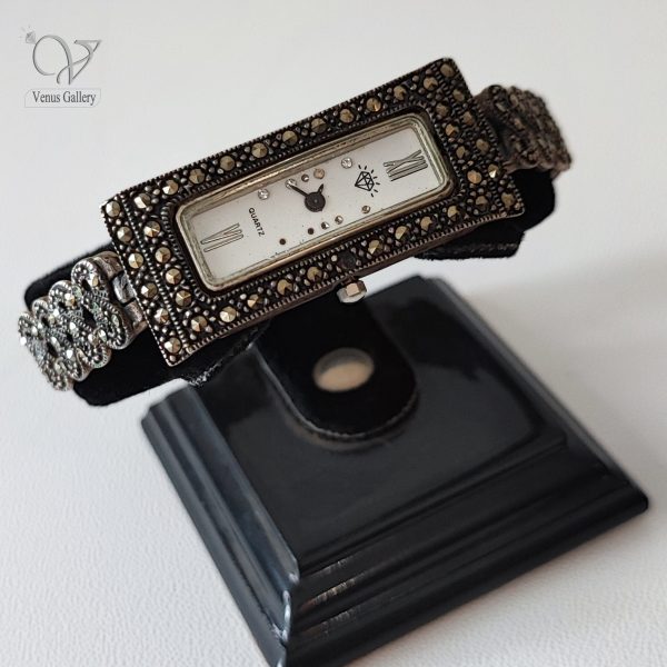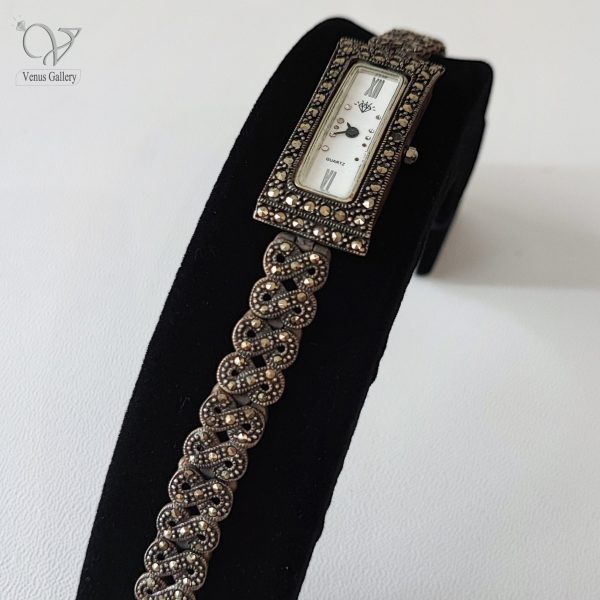 ساعت نقره نگینهای زیبای مارکازیت سنگ فیروزه