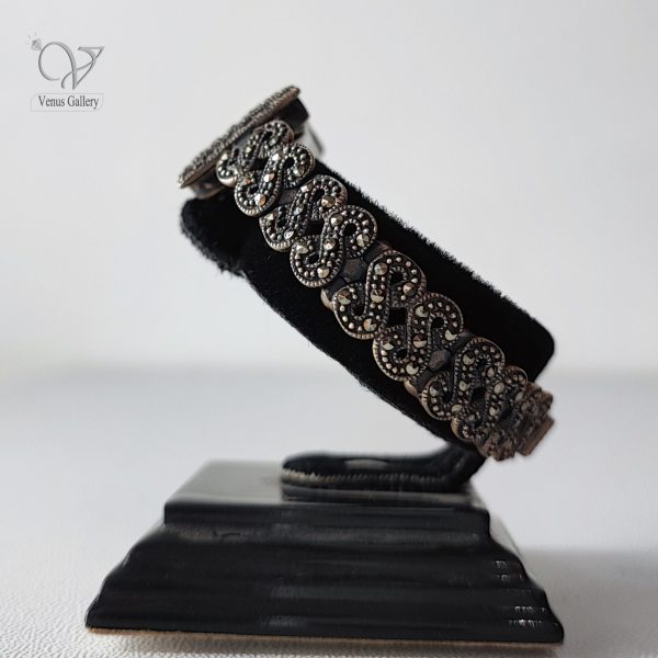 دستبند نقره زنانه نگین مارکازیت سیاه قلم