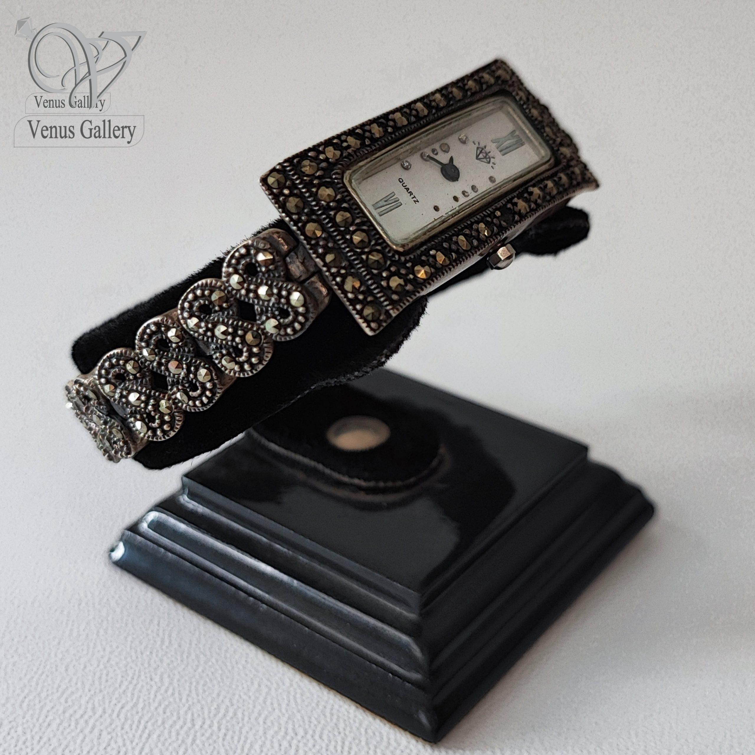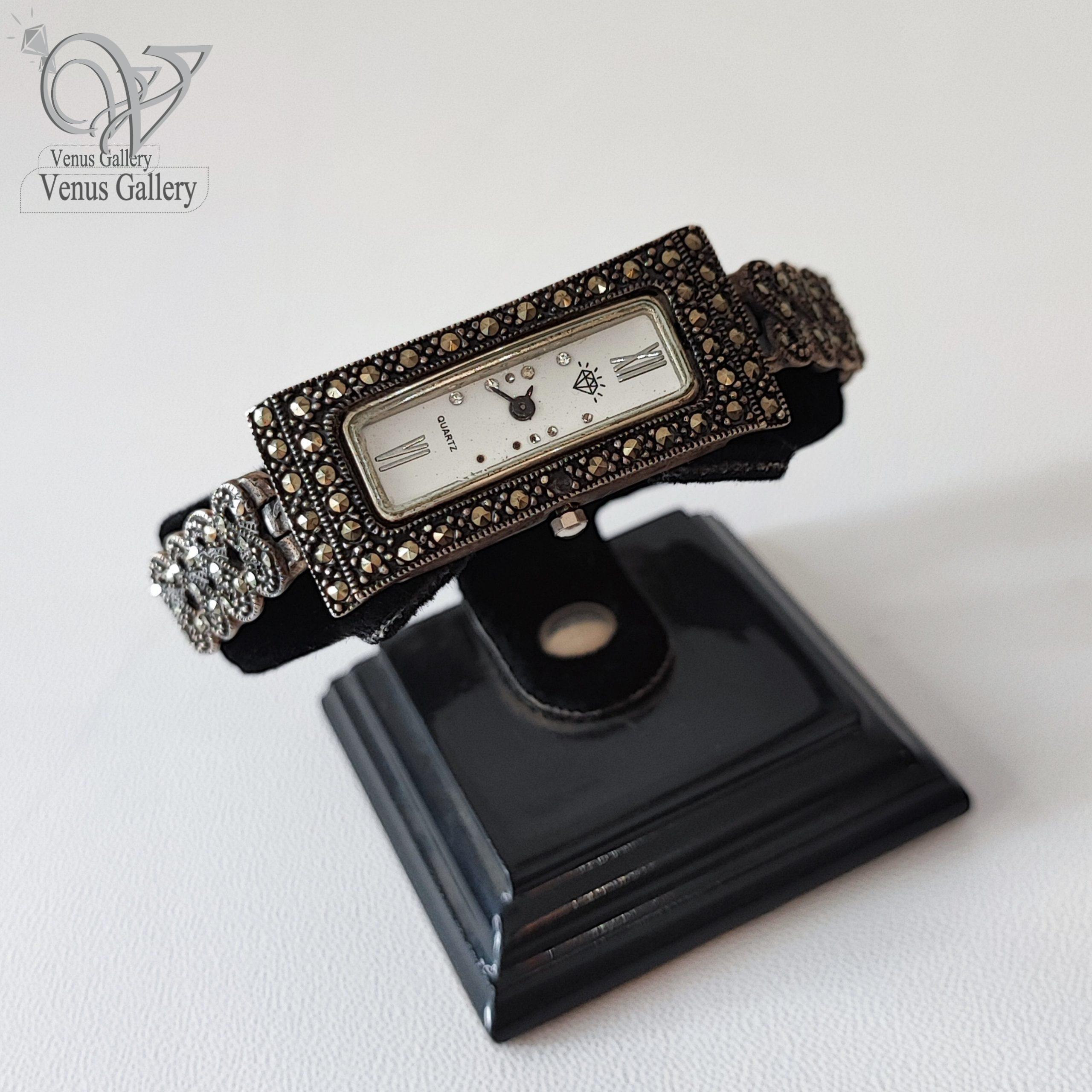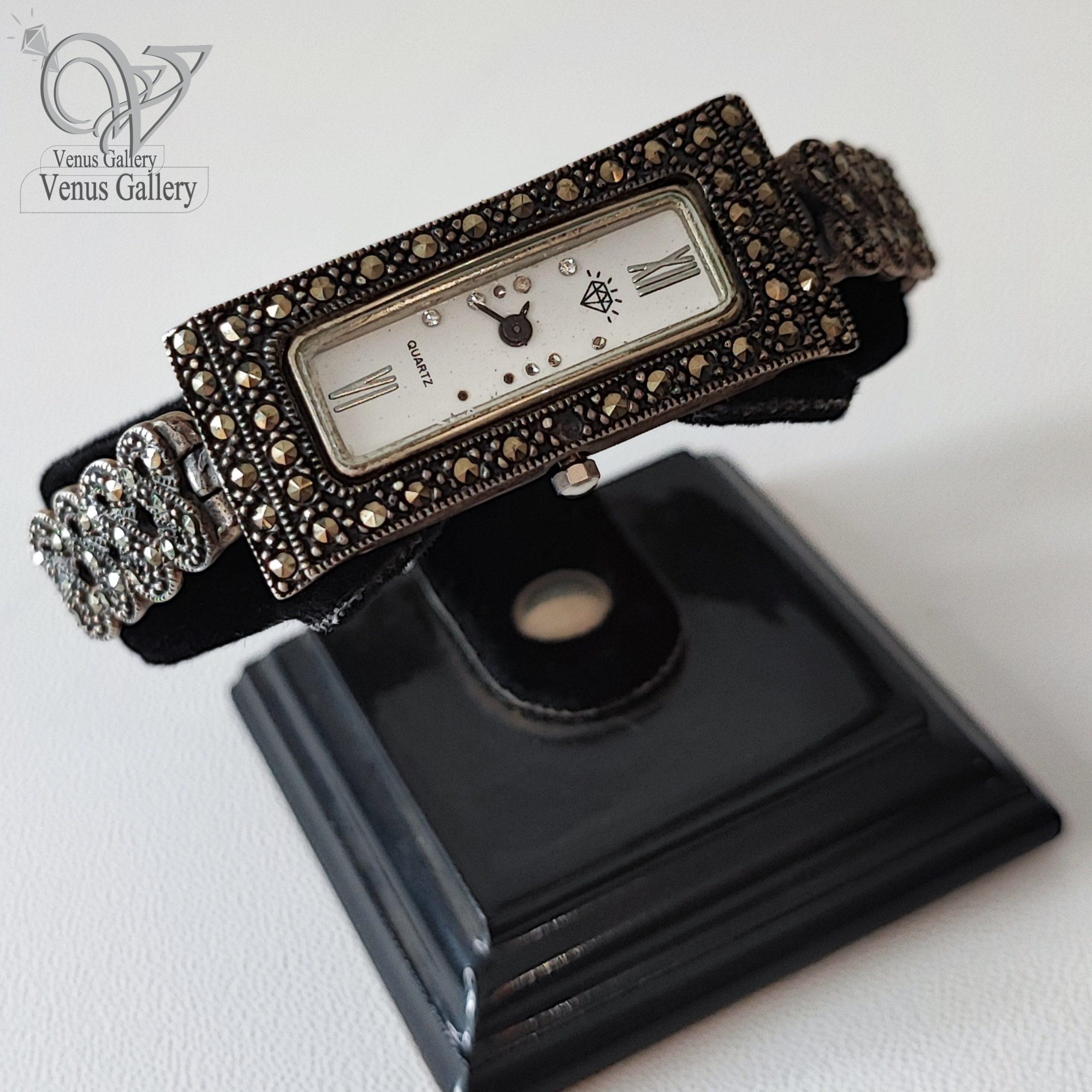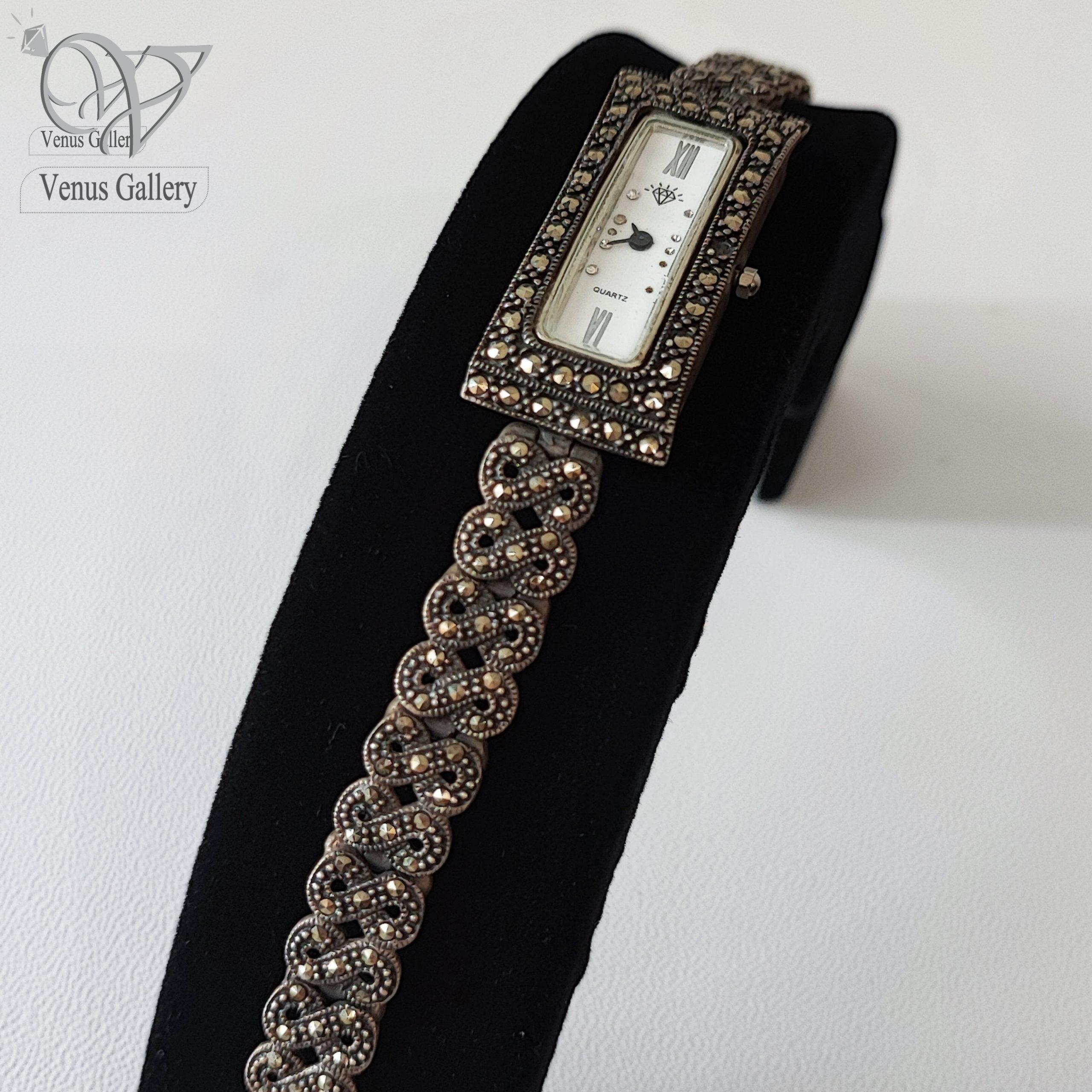 ساعت مچی نقره زنانه نگین مارکازیت سیاه قلم