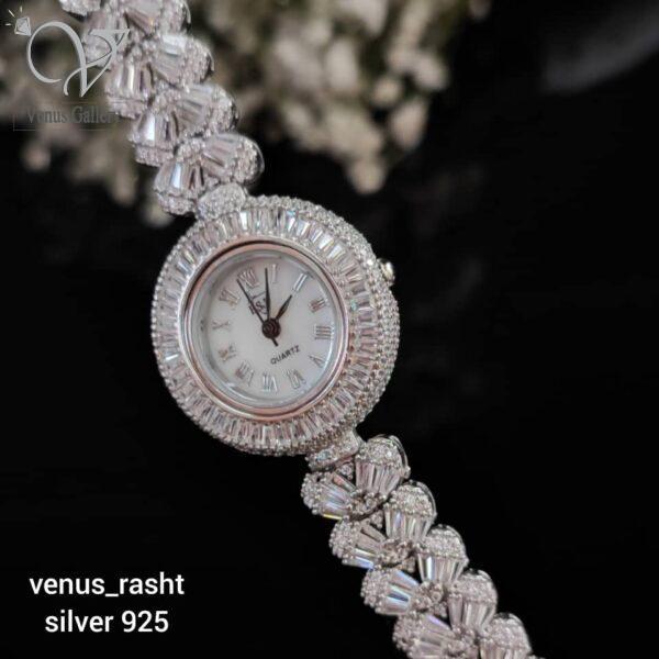 - ساعت نقره زنانه طرح جواهر نگین دار