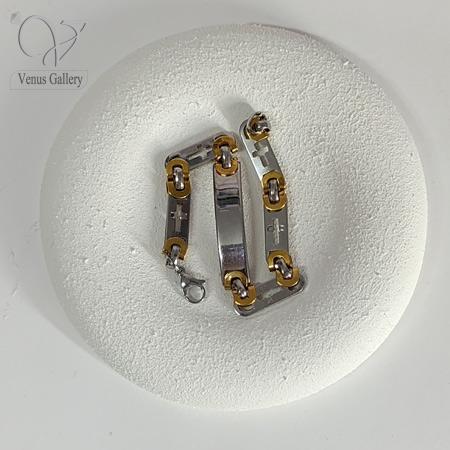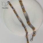 ست گردنبند و دستبند کارتیر مردانه دو رنگ طلایی ونقره ای7571