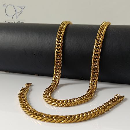 ست زنجیر و دستبند کارتیر  استیل مردانه را می توان معروف ترین طرح زیورآلات مردانه دانست که به عنوان کارتیر یا کارتیه شناخته می شودو که با استفاده از طرح های این شرکت ساخته شده است. این ست زیبا متشکل از دستبند و زنجیر مردانه است. که برای ساخت آنها از استیل درجه یک و با کیفیت استفاده شده است. که روکش آب طلای 18 عیار باعث شده است از لحاظ ظاهری با نمونه طلا تفاوتی نداشته باشد.