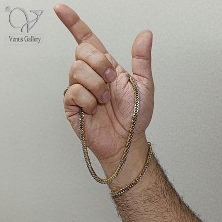 ست گردنبند و دستبند کارتیرپسرانه استیل دو رنگ طلایی و نقره ای کد 9232