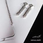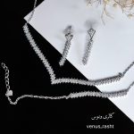 سرویس نقره تنیسی طرح جواهر شامل گردنبند ، دستبند ، گوشواره بوده و از نقره عیار بالا ساخته شده و از آبکاری طلا بهره میبرد.
