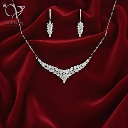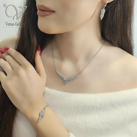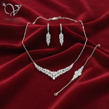 - سرویس نقره زنانه طرح برگ ساخته شده از نقره اصل 925 با روکش رودیوم