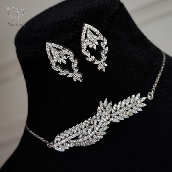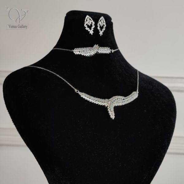 سرویس نقره جواهری زنانه از سرویسهای مجلسی، ساخته شده از نقره با عیار 925 می باشد. سنگهای به کار رفته در آن برلیان اتمی زیرکونیا می باشند.که به صورت میکروستینگ مخراجکاری شده اند. و در برابر ضربه مقاوم هستند. آبکاری دو مرحله ای رودیوم ( طلاسفید) سبب کیفیت بی نظیر دوام رنگآن شده است. و به دلیل عدم استفاده از نیکل در ساختار آن، بدون حساسیت بوده و با پوست حساس سازگار است. به دلیل کیفیت فوق العاده و درخشش عالی سنگها تفاوتی با نمونه طلا ندارد. وزن سرویس 17گرم و 350 سوت است.