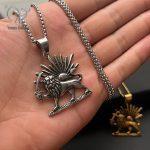 اگر به دنبال گردنبندهای نمادین با طراحی های سنتی و قدیمی هستید پیشنهاد ما به شما این گردنبند شیر و خورشید با کیفیت استیل است.