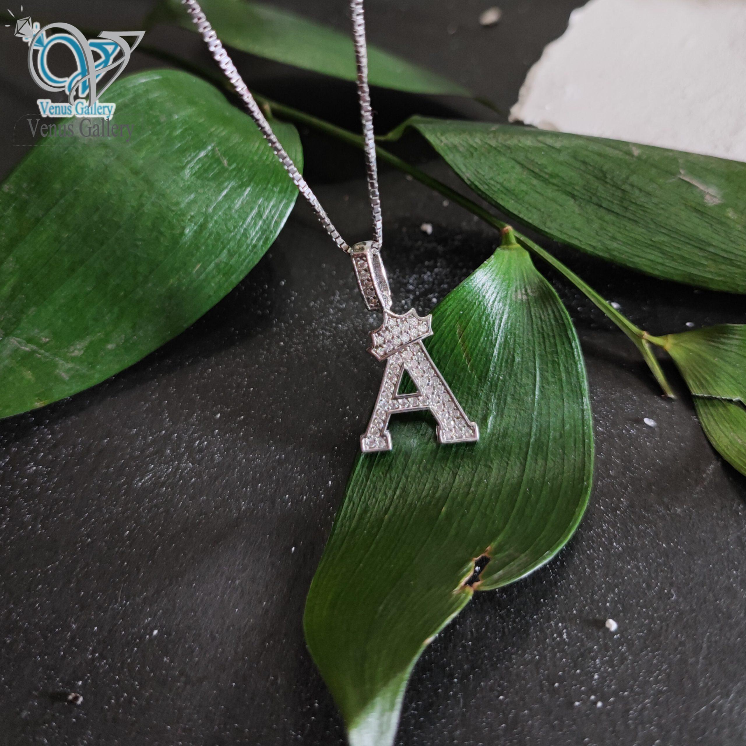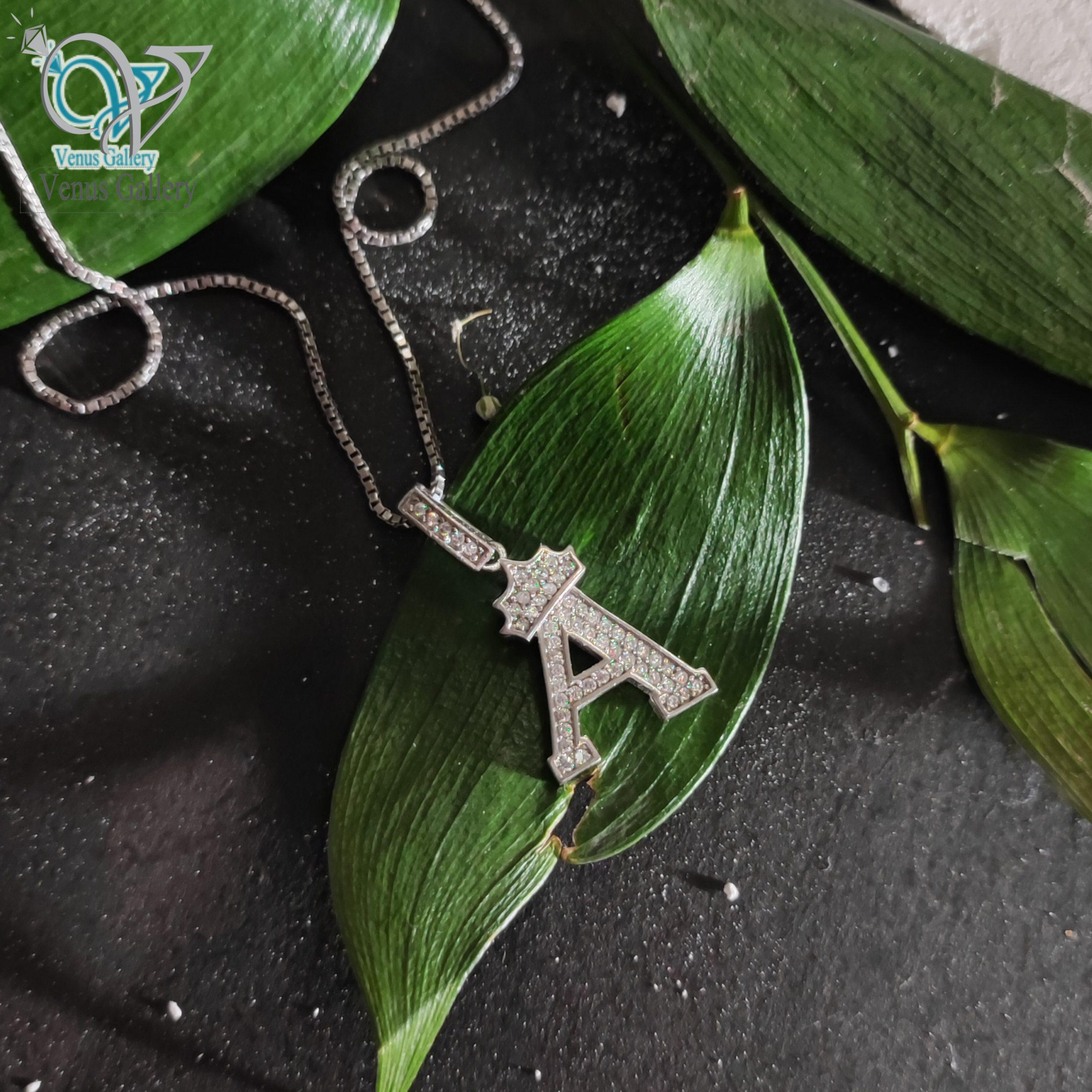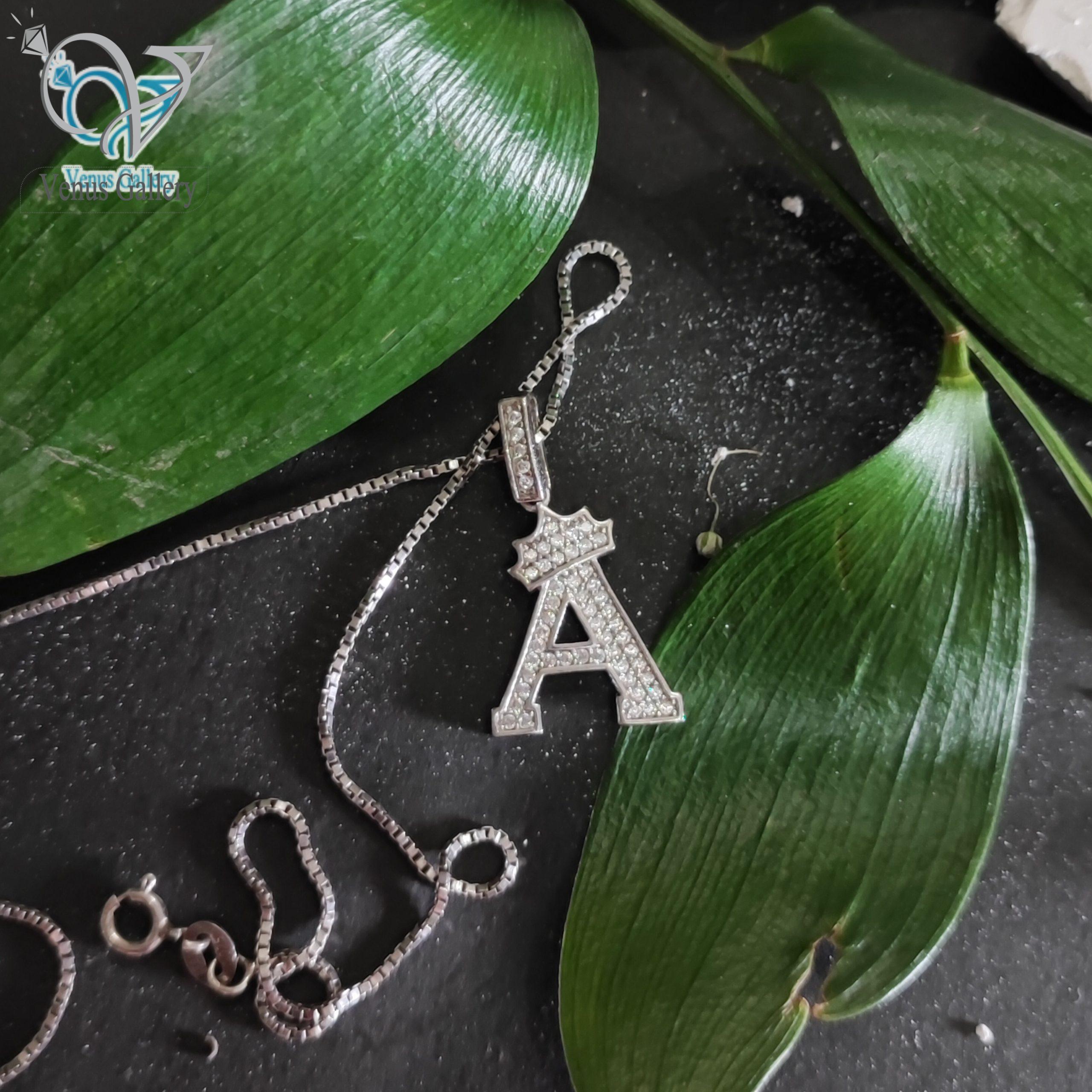 این گردنبند آویزی با حرف انگلیسی A دارد که بر روی آن نگینهای برلیان اتمی اصل با تراش برلیان با دقت کار شده اند.