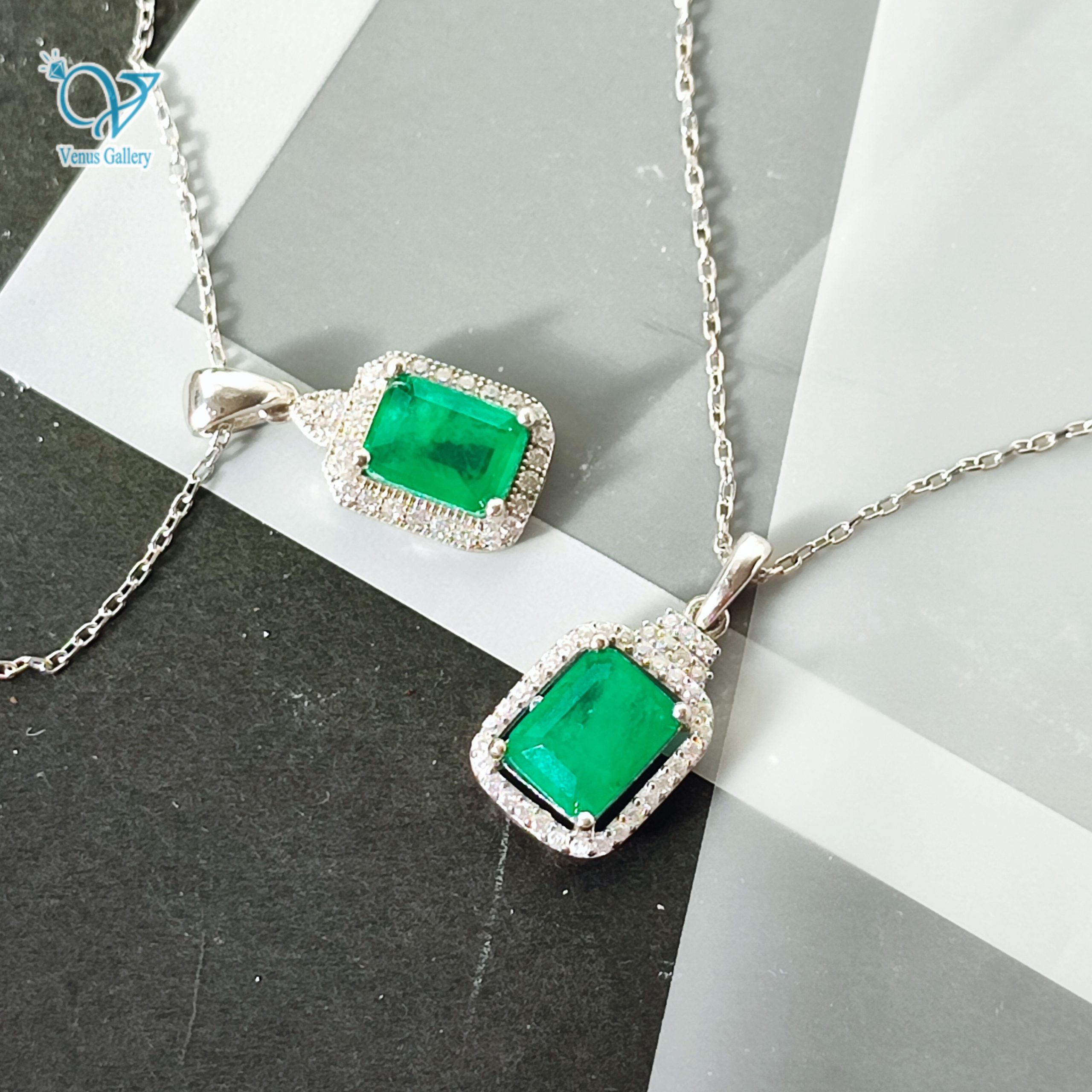مدال نقره طرح جواهر نگین سبز