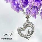 گردنبند نقره طرح قلب وحلقه دخترانه  یکی از خاص ترین و زیباترین طرح های گردنبند زنانه و دخترانه است که از پلاک و زنجیر نقره عیار 925 درجه یک ساخته شده است که بدون تغییر رنگ است .