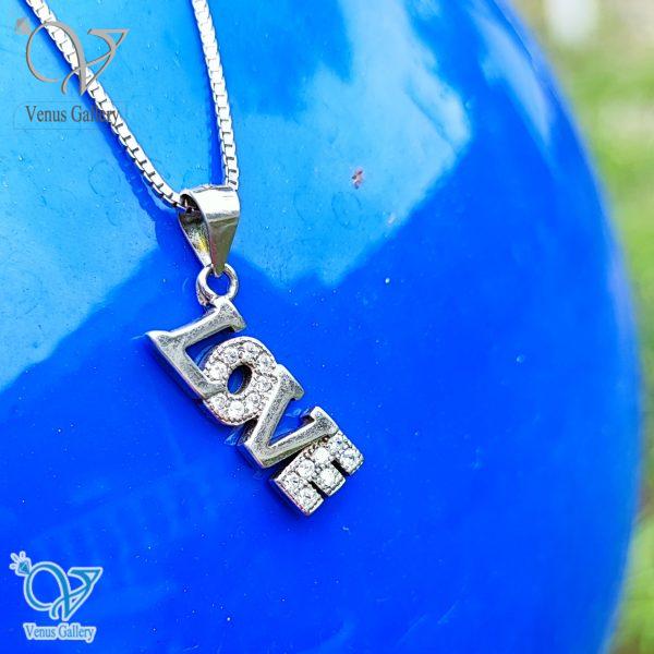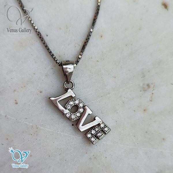 طرحی جدید و زیبا در گردنبند لاو love از جنس نقره عیار ۹۲۵ است.
