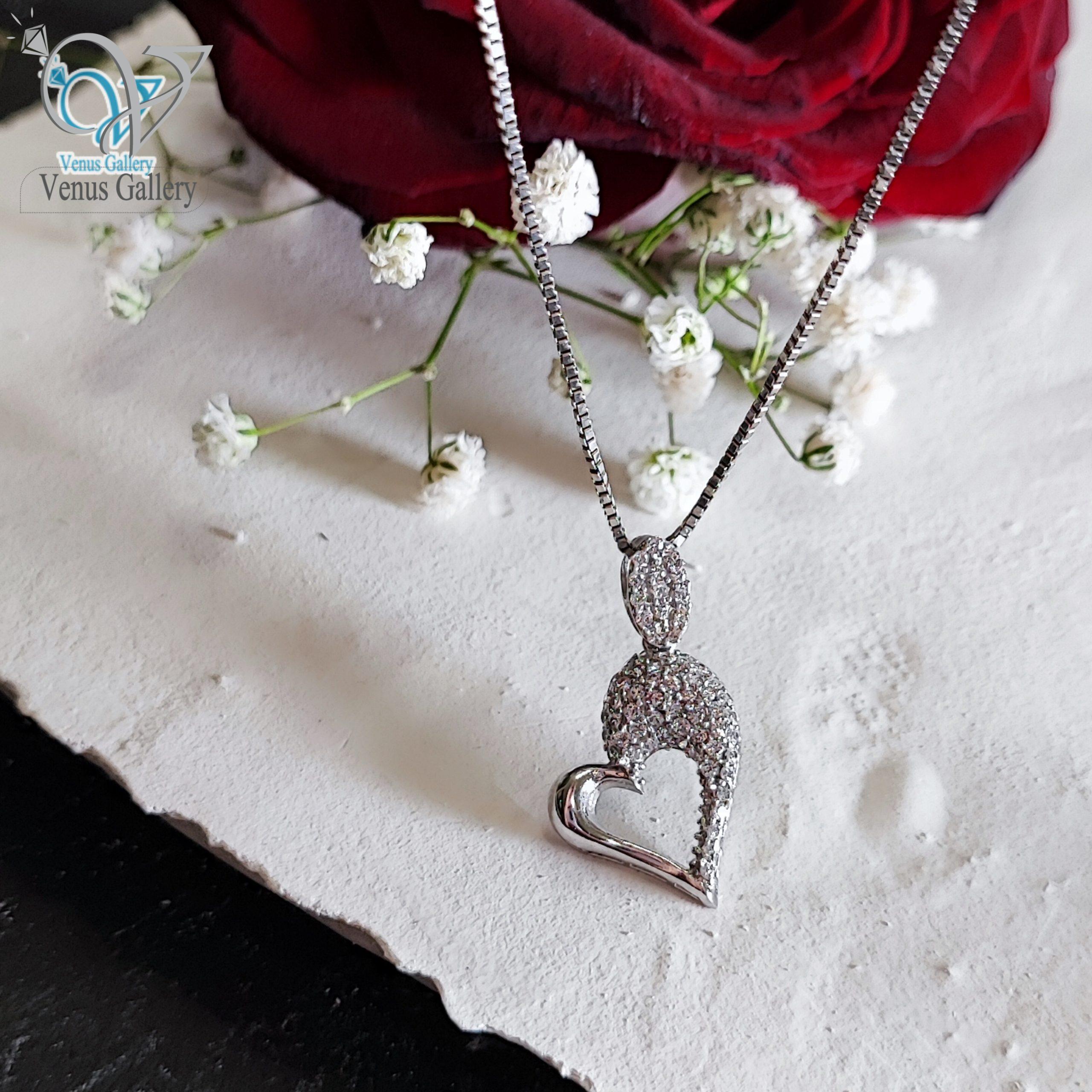 مدال نقره قلب نگین دار کد 2643