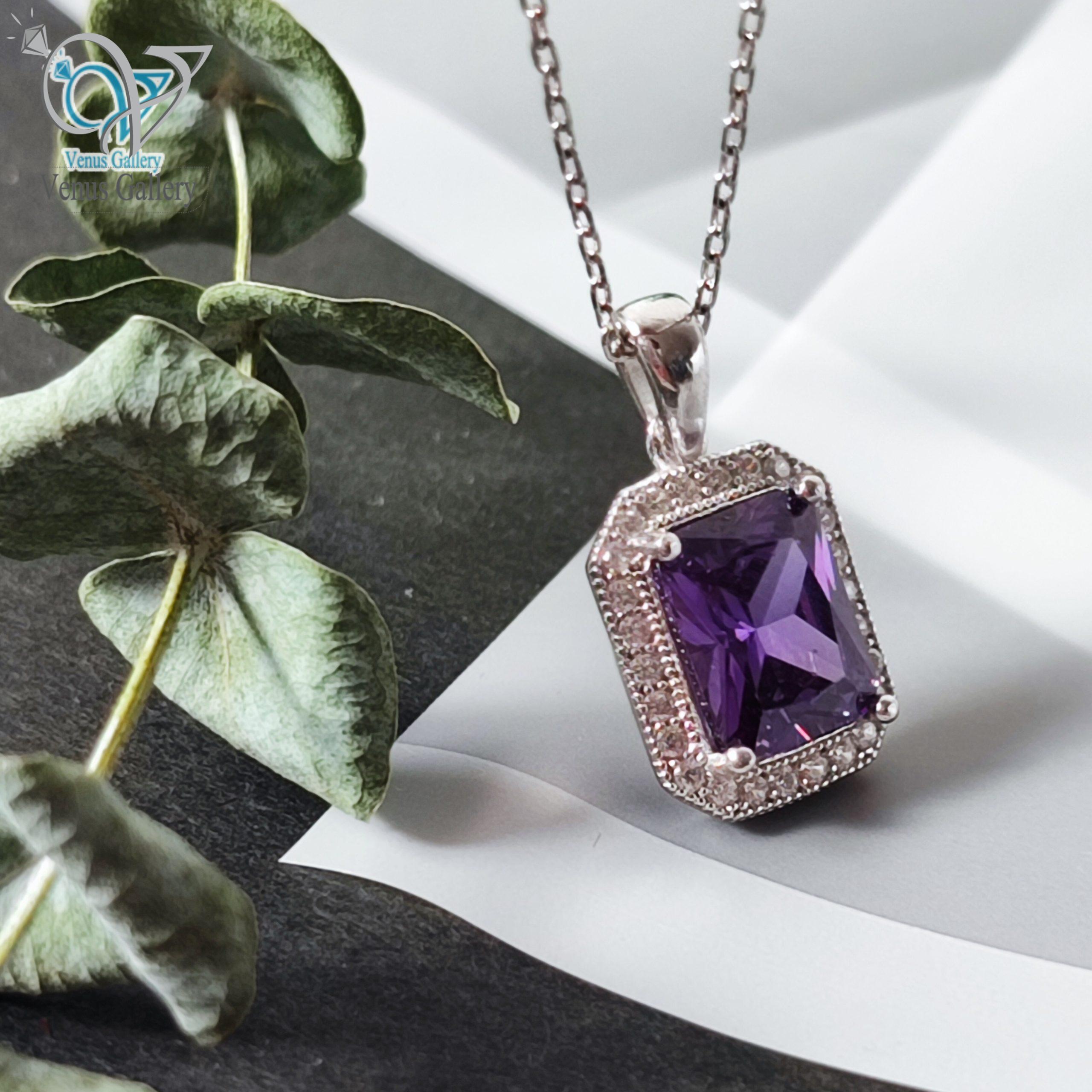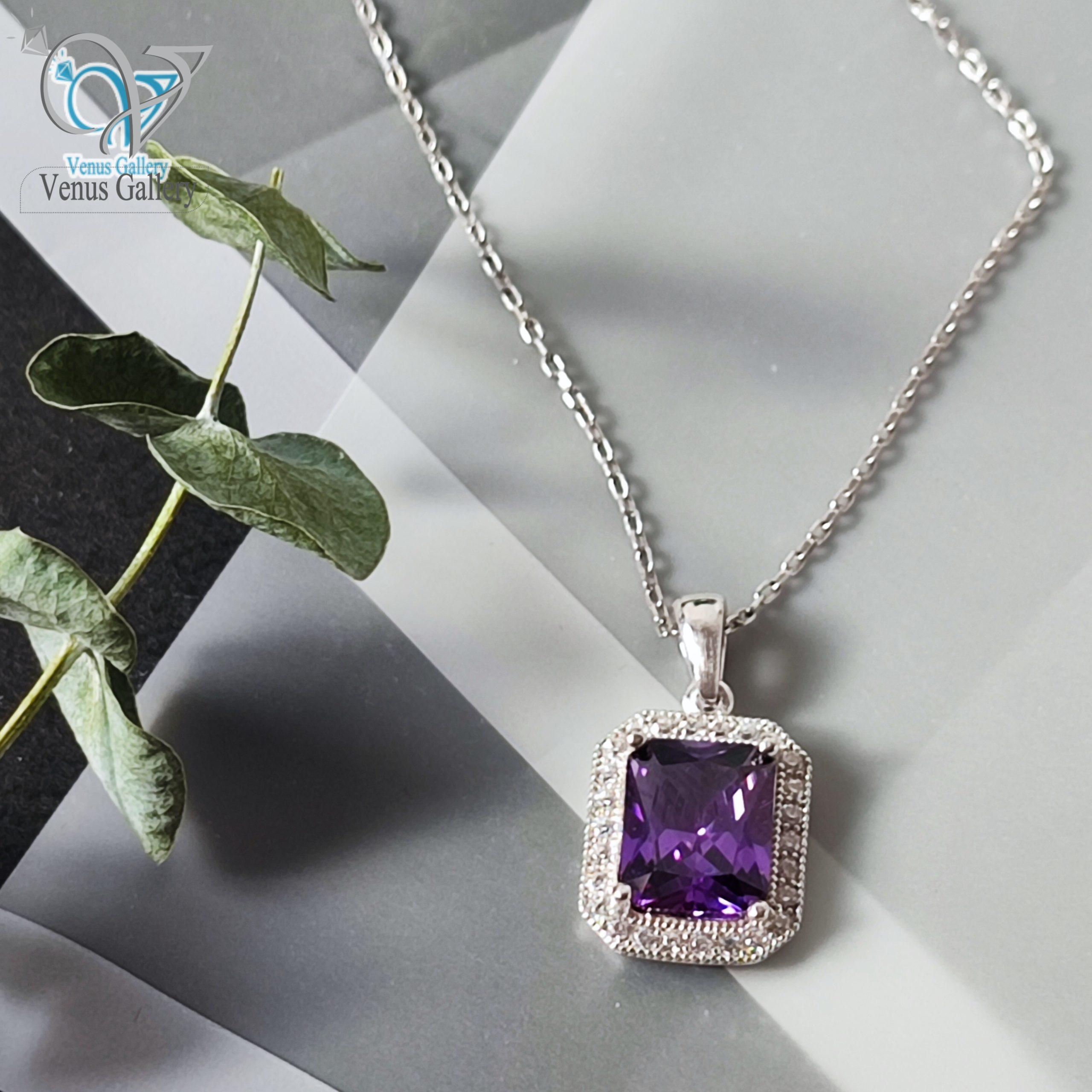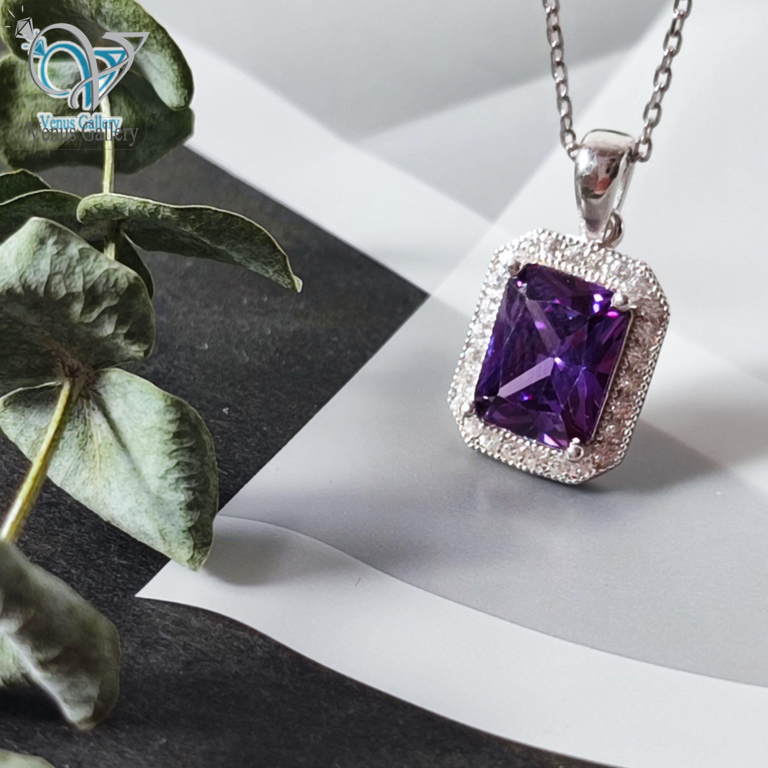 مدال نقره نگین مستطیلی بنفش کد 3094