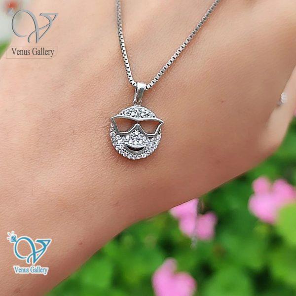 مدال/ پلاک نقره دخترانه طرح استیکر عینکی کد 1667