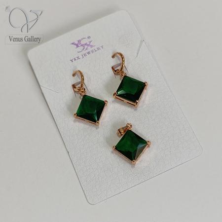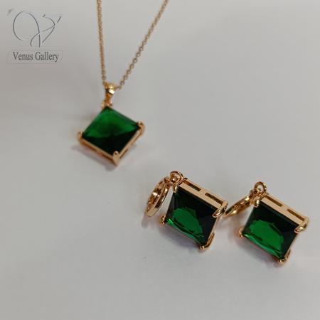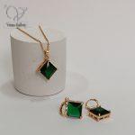 خانه بدلیجات مارک زنانه نیم ست استیل برند ysx نگین سبز کد8292