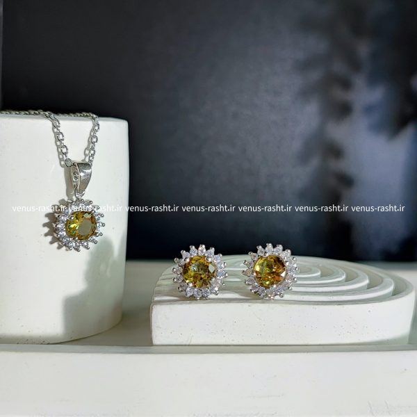 نیم ست نقره سنگ الکساندریت زرد برای متولدین خرداد