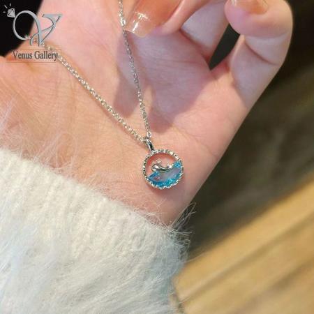 - آویز: دایرهای شکل با طرح دلفین نقرهای بر روی موج آبی (طراحی ظریف و هنری)