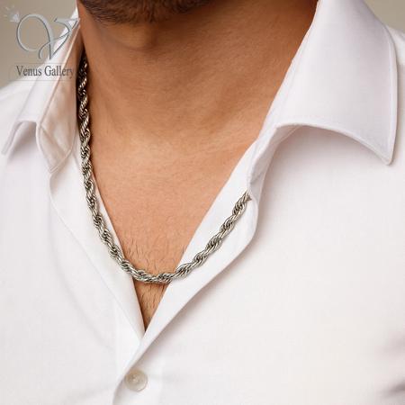 - گردنبند طنابی استیل مردانه با طراحی کلاسیک و بافت درهمتنیده جلوه ای شیک و مردانه به استایل شما میبخشد.