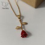 گردنبند غنچه گل رز قرمز نقره و دخترانه کد 9041