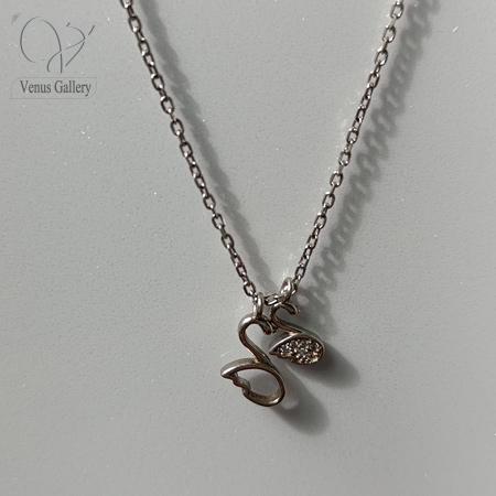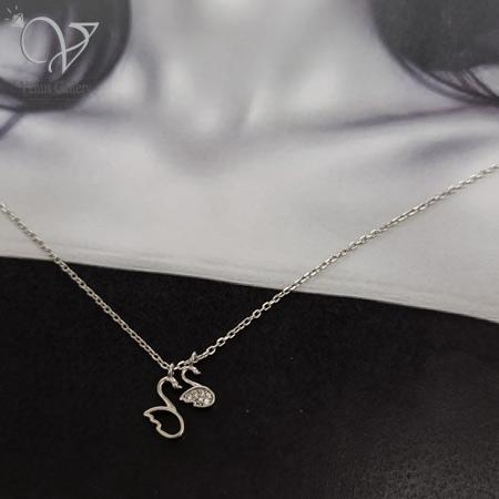 گردنبند نقره ترکیبی از دو قوی عاشق است. دو قوی سفید رنگ زیبا که به نشانه عشق همیشه در کنار هم هستند.