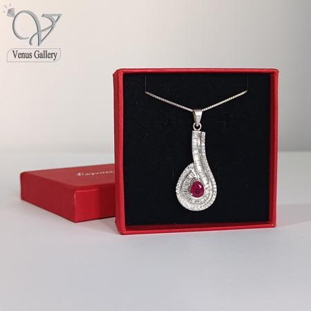 گردنبند نقره جواهری با سنگ یاقوت سرخ اصل یکی از پرطرفدارترین و محبوب ترین ها بین خانمهای جوان است.