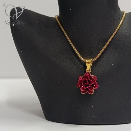 طراحی گردنبند نقره گل رز فانتزی دقیقا شبیه به یک شاخه گل رز سرخ هدیه بده که همیشه و تا ابد ماندگار باشه