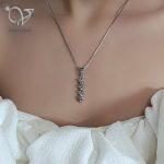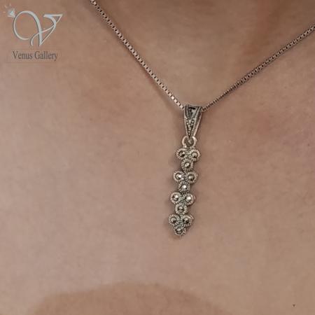 گردنبند نقره زنانه هانگ سیاه قلم با نگین های مارکازیت کد8356