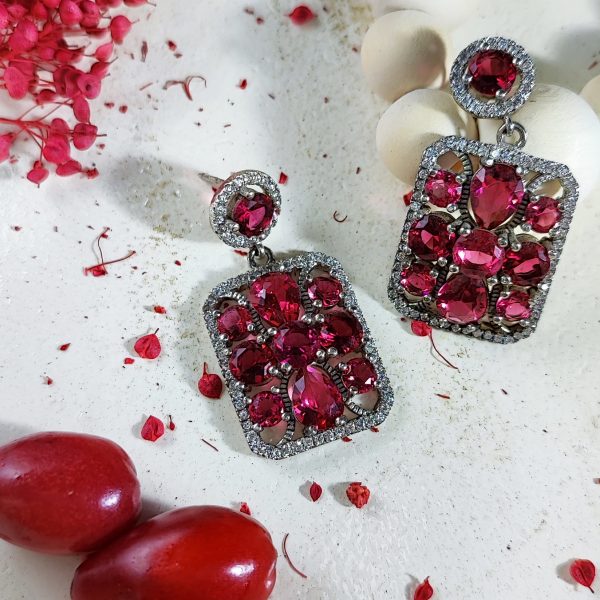 گوشواره طرح یاقوت نگین قرمز این امکان رو به تو میده که مورد توجه جمع بشی