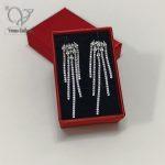 این گوشواره با نگینهای ظریف و آویزهای بلند طراحی شده ، ظاهری زیبا و منحصر به فرد دارد که می تواند استایل شما را کامل کند.