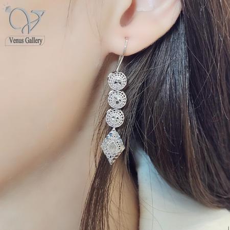 گوشواره نقره زنانه تمام تراش بدون نگین آویز کد 7970