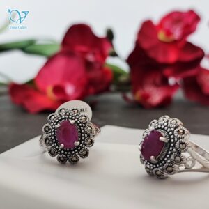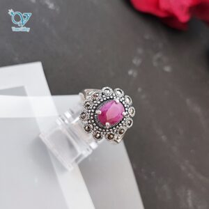 انگشتر نقره زنانه سنگ یاقوت نگین مارکازیت