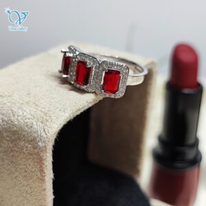انگشتر نقره زنانه سه نگین جواهری رنگ قرمز