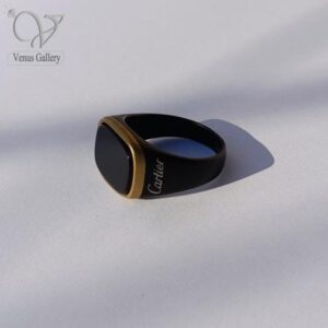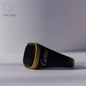 انگشتر استیل مردانه کارتیر مشکی دور طلایی کد8193
